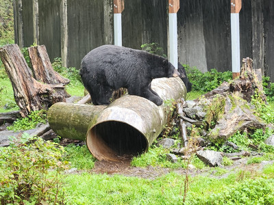 Two of the bear habitats are in old repurposed water treatment containers. In order to open this Fortress, the facility had to show that these containers would work. To get licensed they raised hogs in them for a few months before allowing the first orphan bears in.