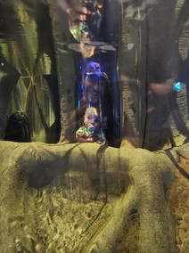 The best way to visit is once you are inside to immediately take a right. This will take you past the Chimpanzee Connection, which we did last. Our first stop was Life in the Cold building, which housed much to my own enjoyment a Snowy Owl. You could easily tell the Potterheads since they kept calling the owl Hedwig. Life in the Desert was next, there were some large ants in one of the last exhibits that made everyone say, "no thank you." We ventured into Life in the Forest, Life in the Water, followed by The Rainforest. The rainforest was Lizzy’s favorite. There were a lot of large fish that caught Lizzy’s attention.