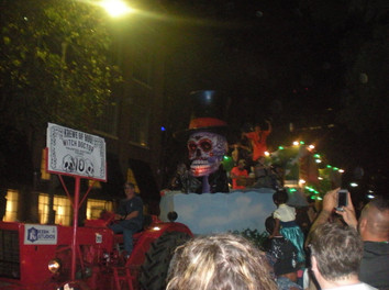 After mass we went to watch the Halloween parade: Krewe of Boo. This parade was created in 2007, it’s a Mardi-Gras-inspired parade. There was an array of artistic floats that tossed beads but also some themed cups. The Grand Marshal in 2017 was WWE Superstar The Miz. We sat along the parade route near Emile’s.