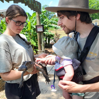 The next day was supposed to rain, but it was sunny the whole time! We went to Alligator Alley. I had read online to buy the gator food and was so happy to listen to that advice because it was so fun tossing these biscuits to the alligators and watching them snap at them. Lizzy, who absolutely loves anything that looks scary and could eat her, loved every minute of it. She and I got to pet an alligator. I got to hold it too! I also got to hold a snake. We walked around the swamp listening to what sounded like bullfrogs but were really alligators, we even heard some hissing.