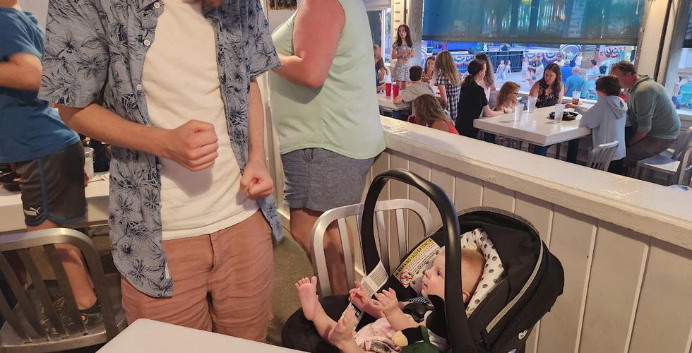 We ate dinner at the Hangout, which is a very popular family fun festival atmosphere. Lizzy was confused about the dancing that Michael and I were doing at random times.