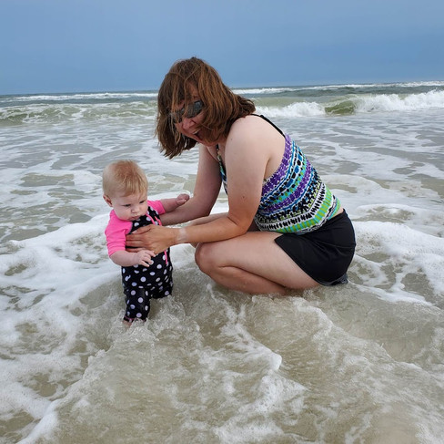After exploring the fort, we went to lunch at Sunliner Diner. We loved the 50s style diner and I got to enjoy a soda float. Soon it was time to go to the beach. It was cloudy but the rain seemed to be holding. Lizzy got to touch the ocean. She was so excited to feel the sand in her toes. After the ocean was a quick jump into the pool. Our hotel had some kid and baby floaties, so Lizzy got to just relax.