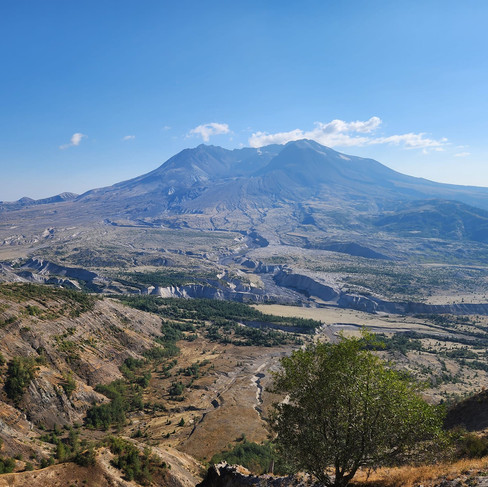 Amber, Michael, and I had learned in school about Mount St. Helens’ explosion in the early 1980s, but it was the experience to see the area afterwards firsthand that really left an impression. When learning the chronological order of events that started on March 27, 1980, with an explosive steam eruption from Mount St. Helens. The volcano would later experience minor eruptions and earthquakes with growing pressure causing a bulge to form on the north side of the peak. Then on the morning of May 18, a massive earthquake would trigger a landslide down the north side of the peak. This avalanche would then be overtaken by a lateral air blast, which had superheated ash and stone. The avalanche and blast were followed by mudflows (some which made it over the rolling hills and to where we had stood on Johnston Ridge Observatory), pyroclastic flows, floods from the melted glaciers on Mount St. Helens. Because of this explosion Mount St. Helens peak was completely blasted away leaving the horseshoe-shaped crater. Also, we learned that even some new lakes were formed because of the explosion.